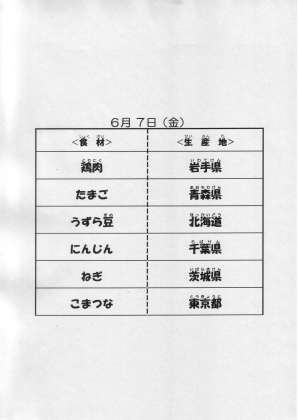 6月6日(木)の給食と6月7日(金)献立食材の産地について