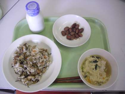 6月7日(金)のかきたま汁の卵はふわふわで、とても口当たりがよく人気でした。卵をふわふわにするコツは、かき混ぜながらゆっくり卵を入れることです。