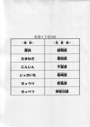 6月10日(月)の給食と6月11日(火)献立食材の産地について