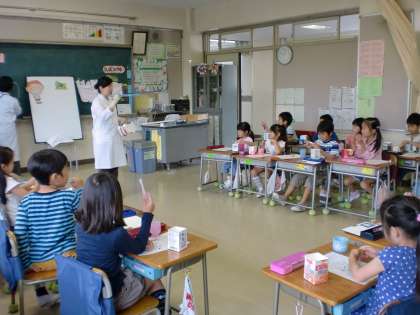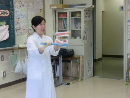 6月13日(木)養護教諭と歯科学校医の保母先生による歯磨き指導を、1年生を対象に実施しました。