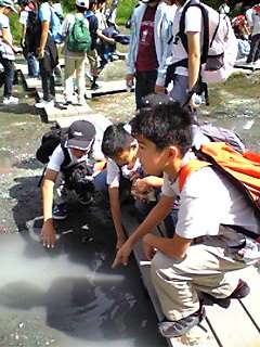 源泉に触れて思わず、