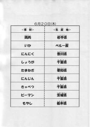 6月20日(木)献立は塩焼きそば、牛乳、ナムル、フルーツヨーグルトです。献立食材の主な産地は以下の通りです。