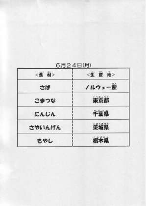 6月24日(月)献立は、ごはん、牛乳、魚のごまだれかけ、切干大根の煮つけ、おひたしです。献立食材の主な産地は以下の通りです。