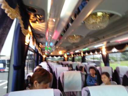 三好で休憩後、出発。小雨が降っていますが、バスレクで楽しそうです。