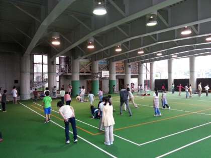 だるまさんが転んだ。みんなでやると楽しい、と言っています。