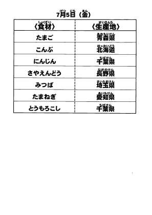 7月5日(金)の献立食材の産地について
