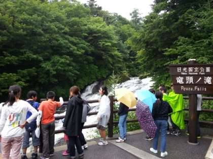 雨がやんでる間をぬって竜頭の滝を見学中です。