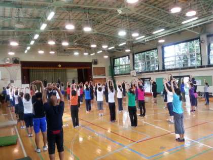 等々力小学校に集まって体育の実技研修会がはじまりました。