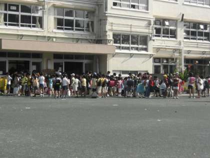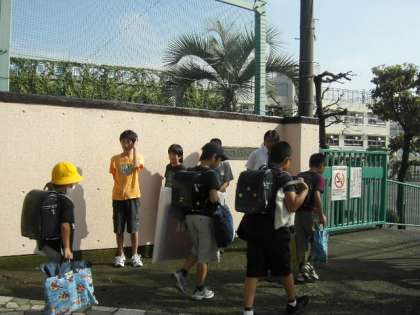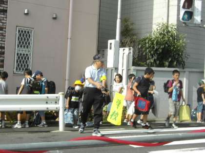 夏休み後半から新型インフルエンザの報道が多くなりましたので、学校としても緊急メールやホームページで注意をよびかけるとともに、今朝は全教職員で子供たちの登校の様子を見守りました。