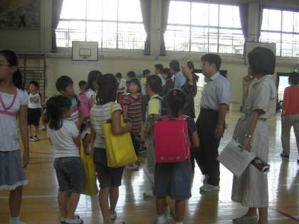 防災避難訓練も予定通り11時から行われました。残留児童の下校も11:45に終了。地域班ごとに担当教師が集合場所まで引率し、訓練は終了しました。