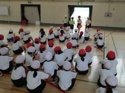 今日は、1年生と3年生のプール納めがありました。天候が悪かったため、体育館で実施しました。代表のお友達がこの夏のプールでがんばったことや楽しかったことを発表してくれました。この夏もみんな楽しく水遊びや水泳に取り組めたようです。