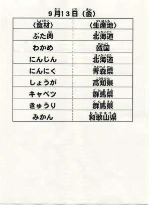 9月13日(金)の献立は、ごはん、春巻き、わかめサラダ、冷凍みかん、牛乳です。