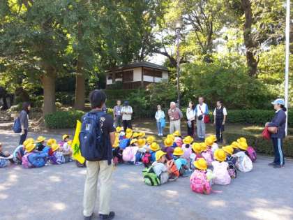一年生は、秋見つけに多摩川台公園にやって来ました。たくさんの学習支援の皆さんが協力してくださっています。