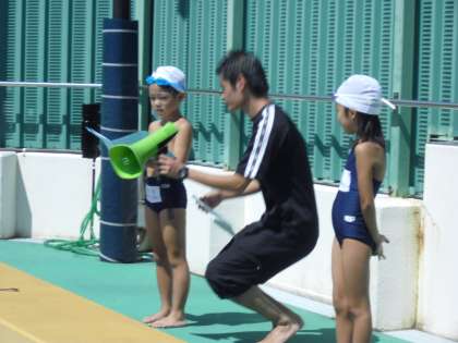 代表の子どもたちが、今年の水泳学習をふりかえり、目標が達成できた喜びを報告してくれました。2年生は、最後の検定もありました。