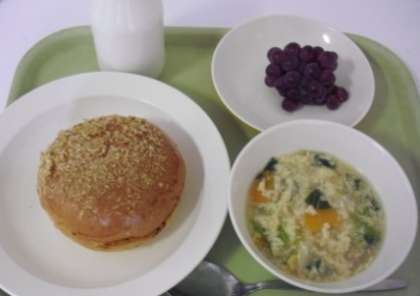<献立>焼きカレーパン、牛乳、チーズのふわふわスープ、デラウェア