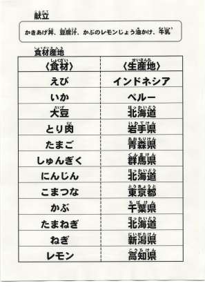 給食食材の産地情報