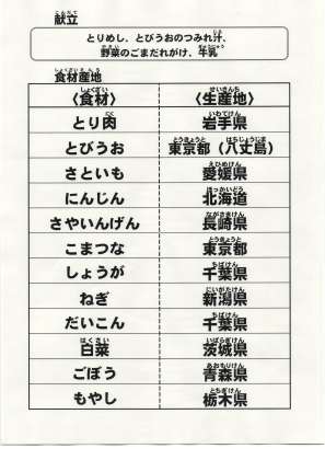 11月25日(月)の献立と食材の産地は以下の通りです。