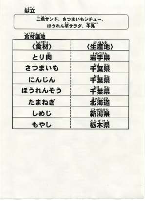 11月29日(金)の献立と食材の産地は以下の通りです。