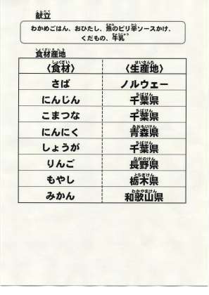 給食食材の産地情報