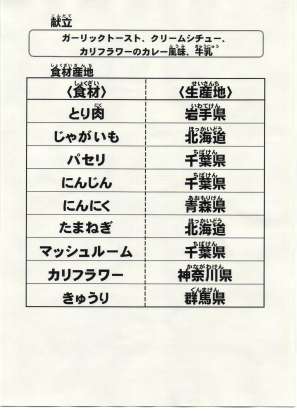 給食食材の産地情報
