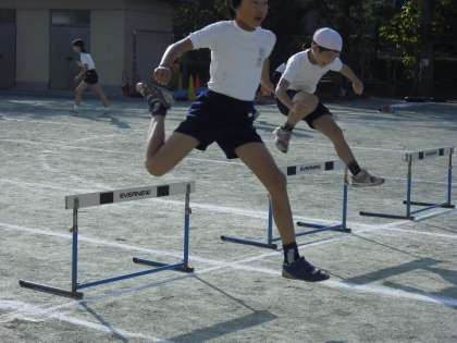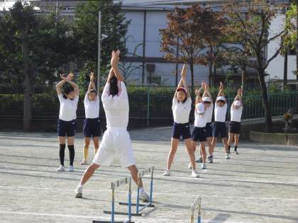 初日の今日は、準備体操にはじまり、ハードル、高跳び等の練習がありました。6年生のほとんどが参加しました。6年担任のみならず他の学年の教師も支援・協力しました。