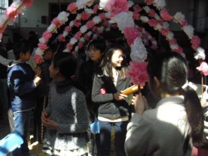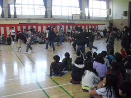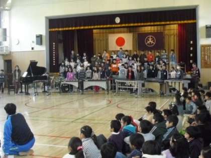 今年の6年生を送る会は「はばたけ未来へ6年生!新しい世界への幕開けだ!」を合言葉に、6年生へのインタビュークイズ、各学年から6年生への出し物、6年生から5年生への引き継ぎ、全校合唱など盛りだくさんの内容で行われました。5年生以下の学年からは、6年生への憧れや感謝の気持ちが発表され、6年生からはそれに応えるように合唱と合奏のプレゼントがありました。代表委員会の働きにより和やかで心温まる会になりました。その後は「お別れ給食」として、6年生が1〜5年生の各教室にわかれて入り、一緒に給食をいただきました。