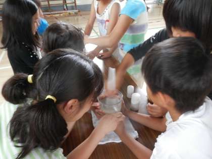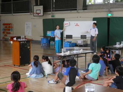 4年生が社会科の学習内容と関連して、東京都水道局から水道キャラバンの皆様に出前授業を実施していただきました。前半は実際にどのくらいの水が使われているかとか、水はどのような旅をへてわたしたちの蛇口までくるのかということなどを映像とお話で教えてくださいました。2時間目は、汚れた水をきれいにする凝集沈殿ろ過実験をグループに分かれて行いました。最後に学んだことをふりかえりました。