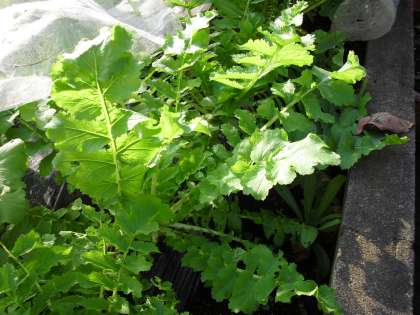 2年生の学年園では、大根や白菜が育っています。例年、2年生はお世話になる地域の方々に野菜を育てお礼にさしあげています。
