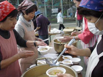 11:30から炊き出し訓練を行い試食後解散しました。予定通り12:00すぎには終了しました。多くの地域・保護者の皆様にご協力いただきましてありがとうございました。