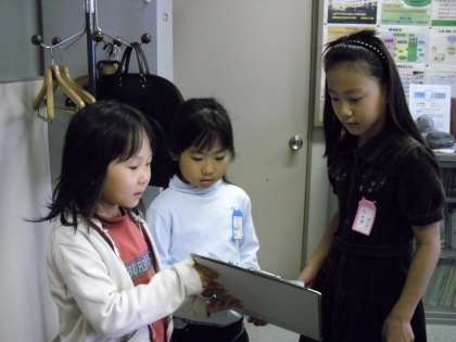 全校朝会の後、各クラスの出席状況の報告を受け、出席カードを受け取りました。