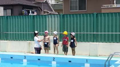 今日は今シーズンのプール開きをしました。だるま浮き、ラッコ浮き、水中じゃんけん、宝さがしをがんばります。と、児童代表の言葉もしっかり言うことができました。