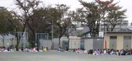 しかし、気温はとても低く、冷たい木枯らしがふく冬らしい曇り空の中、校庭や屋上などでクラスごとにお弁当を楽しみました。