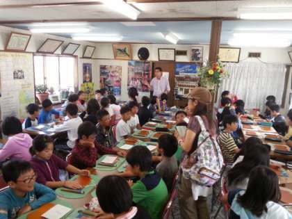 これから日光彫り体験です。あらかじめ用意した下絵をもとに彫っていきます。