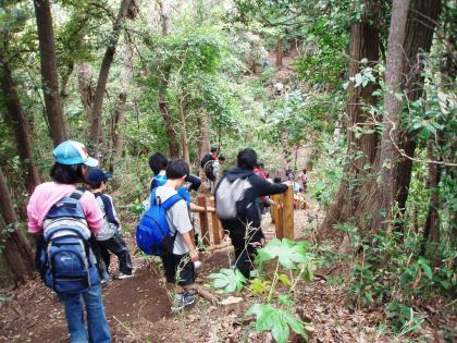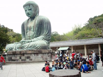 源氏山公園で昼食を済ませた後、大仏ハイキングコースを通って、高徳院(長谷大仏)をめざして歩きました。ハイキングコースを歩いていると、時折木立の先に、海が見えてきます。すぐ近くに海が見えると元気が出ます。最後の階段を下りきると長谷大仏の近くにでてきます。6年生は、大仏をバックに学年集合の写真をとりました。
