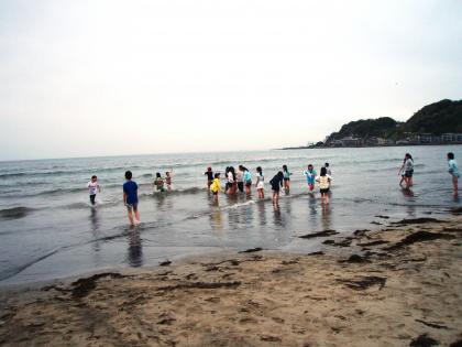 最後に由比ヶ浜で、しばらく時間を過ごしました。波と砂でたわむれ、心も体も元気になり、学校へと戻ってきました。