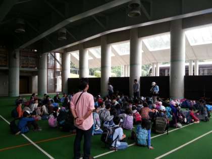 ほぼ予定通りに到着しました。これから昼食を食べてから、守山小学校と合同で開校式です。