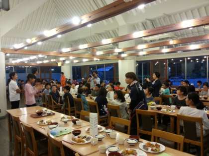 これから夕食、いただきます。食事の後はキャンプファイヤーです。