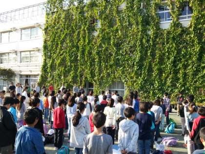 ほぼ予定通りに帰校式を行っています。家に帰るまでが移動教室。気をつけて帰りましょう。