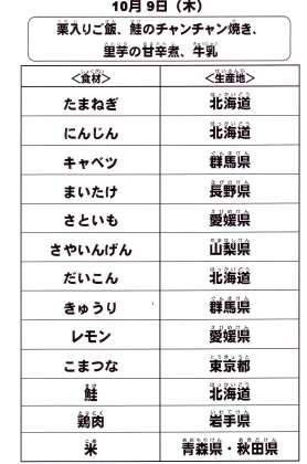本日の給食で使用した主な食材の産地は以下の通りです。