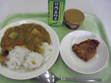 献立は『カツカレーライス、福神漬け、緑茶、バニラアイス』でした。