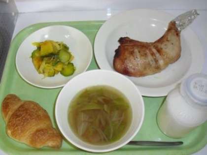 献立は『クロワッサン、牛乳、ローストチキン、レタススープ、パンプキンサラダ』でした。