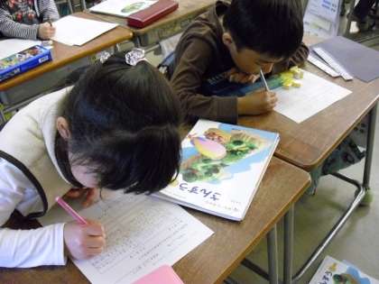 子どもたちは、まず自分で考えます。次に互いに説明し合うことで、「同じ考えだ。」と自信をもったり、「そういうふうに考えたのか。なるほど。」と思ったりしながら学習は進んでいきました。分かってもらおうと一生懸命言葉を選びながら説明する子。分かろうとして友だちの説明に耳をすます子。