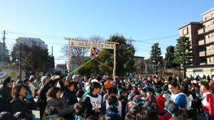 第33回新春奥沢地区まつりがファンファーレとともにはじまりました。たくさんの人が集まっています。