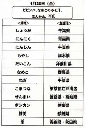 給食食材の産地情報