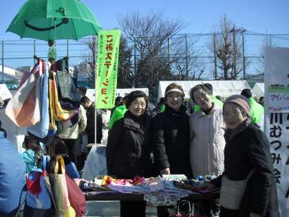 その後方では、ごみ減量リサイクルステーションコーナーがあり、廃油を利用したせっけんづくりや、夏に傘を利用したエコバックづくりでご指導いただいた地域の方々が活躍されていました。