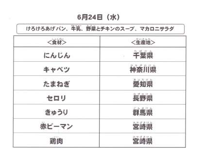 本日の給食で使用した主な食材の産地は以下の通りです。