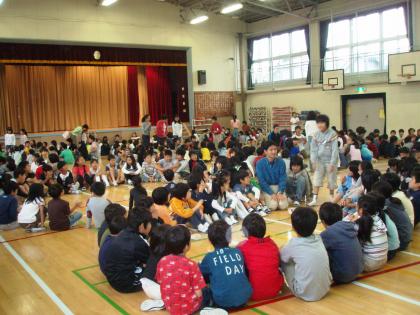 今年度1回目の縦割り班活動でした。初めての顔合わせなので、自己紹介をしました。6月10日(火)には、20分休みに縦割り班で遊ぶことになっています。1年生から6年生まで合わせると、一つの班のメンバーは30人ぐらいになります。これから、6年生と担当の先生が相談をして、遊びの場所や内容を決めていきます。どんな遊びになるか楽しみですね。