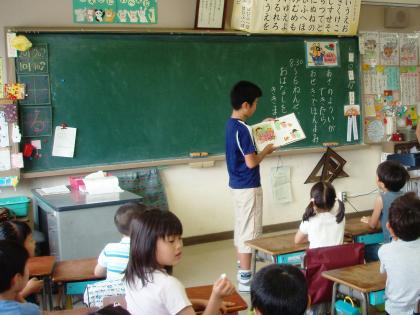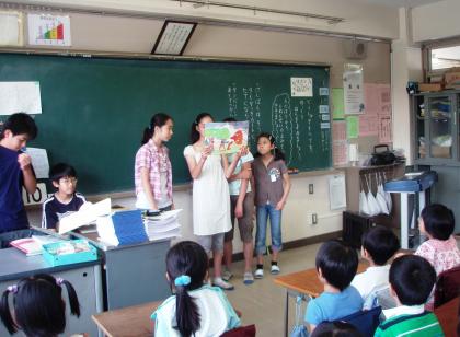 今日は6年生のお兄さんお姉さんが1年生の教室にやってきて、絵本や紙しばいの読み聞かせをしてくれました。読むのがとても上手で、1年生はみんな目を大きくあけて、耳をしっかり使って聞いていました。みんなも早く6年生にみたいになりたいなって思っています。
