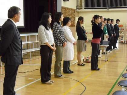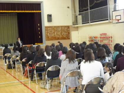 始めに、全体会で担任や関係教職員の紹介をし、学校経営方針を説明しました。その後、学年ごとに、学級担任挨拶、学年の経営方針や年間の学習予定・行事予定について説明しました。最後に、各教室で保護者の自己紹介やPTA学年委員等の選出等をしました。