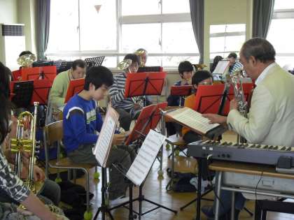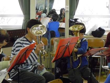 奥沢吹奏クラブの皆さんは、鳥谷部先生のご指導のもと毎週土曜日、春休み中も休まず練習しています。